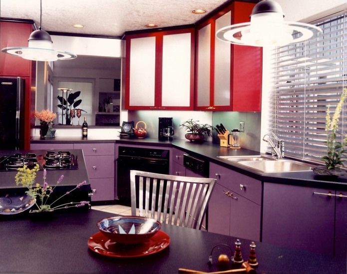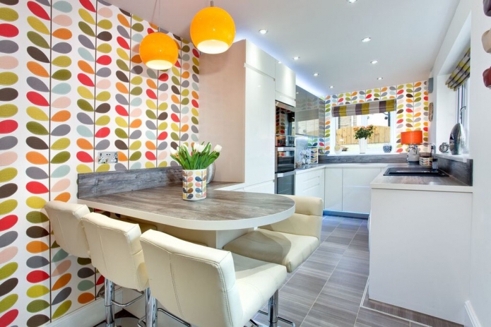 Having shown courage, the creators of the interior of a small kitchen can try other types of layout.