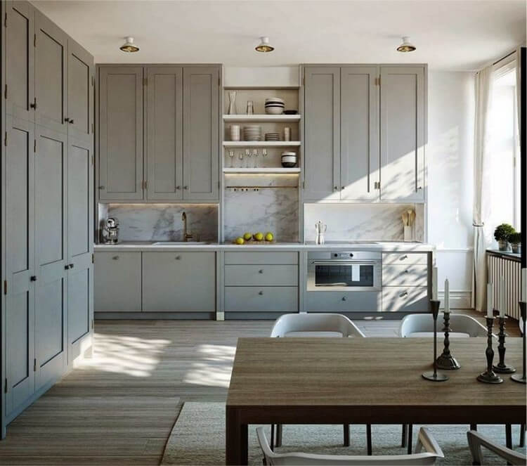 Gray is the universal color for the kitchen of any size with the right choice of shade