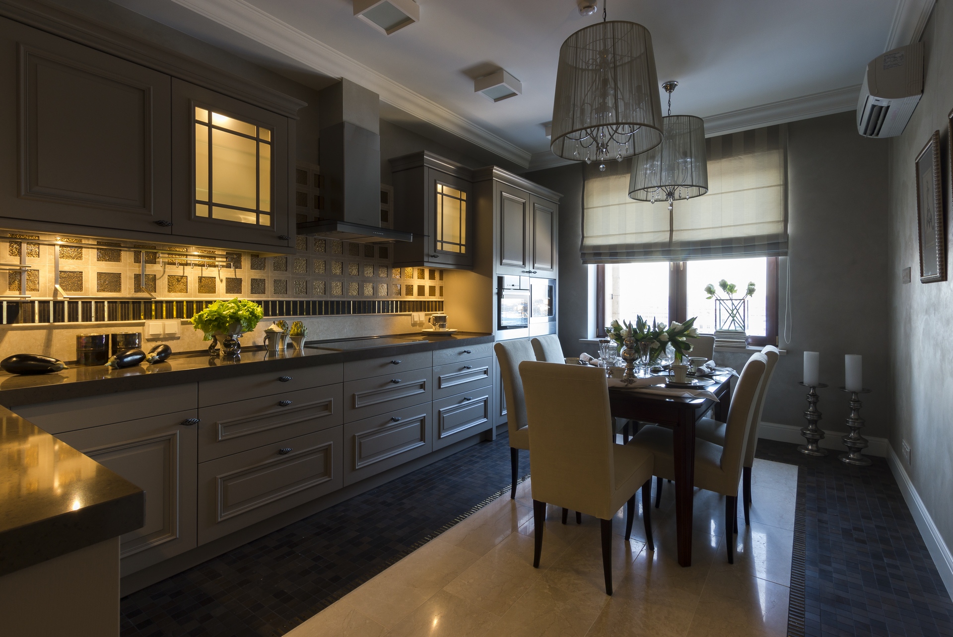 Gray dining area in the kitchen in the style of modern Art Nouveau