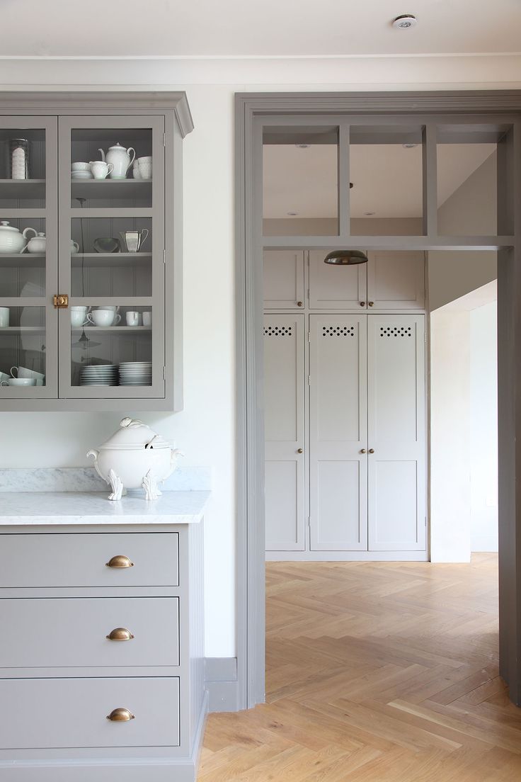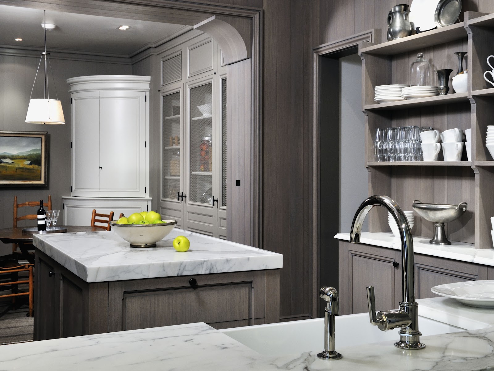 A neoclassical kitchen with a predominance of blue, gray here plays the role of relevant accents