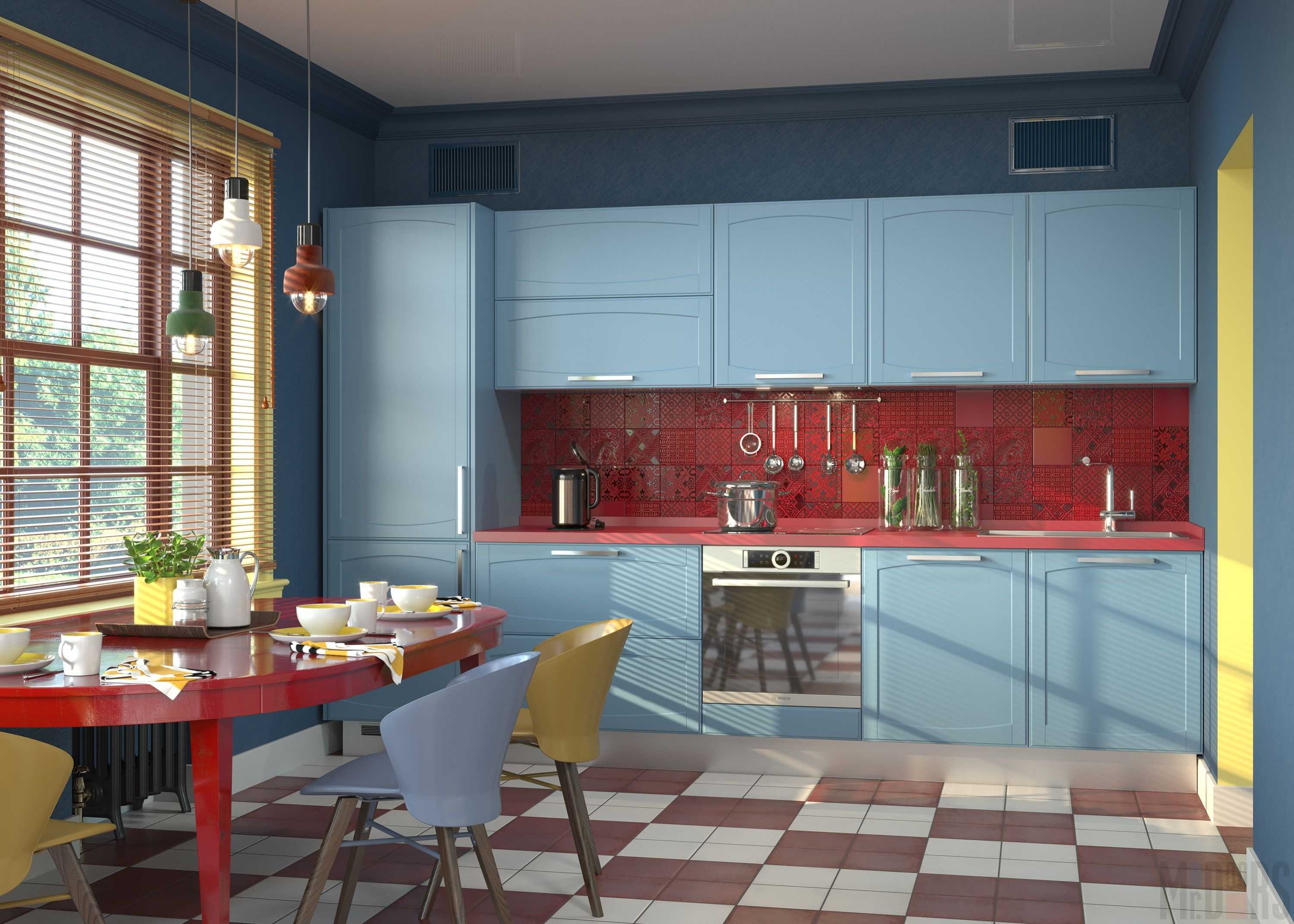 The combination of colors in the interior of the kitchen