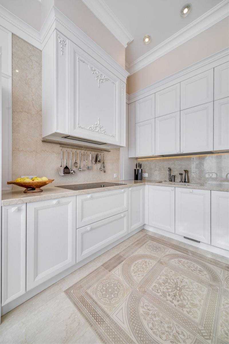 3. The neutral background is suitable for any combination in the design of the kitchen. But even white has its own shades:
