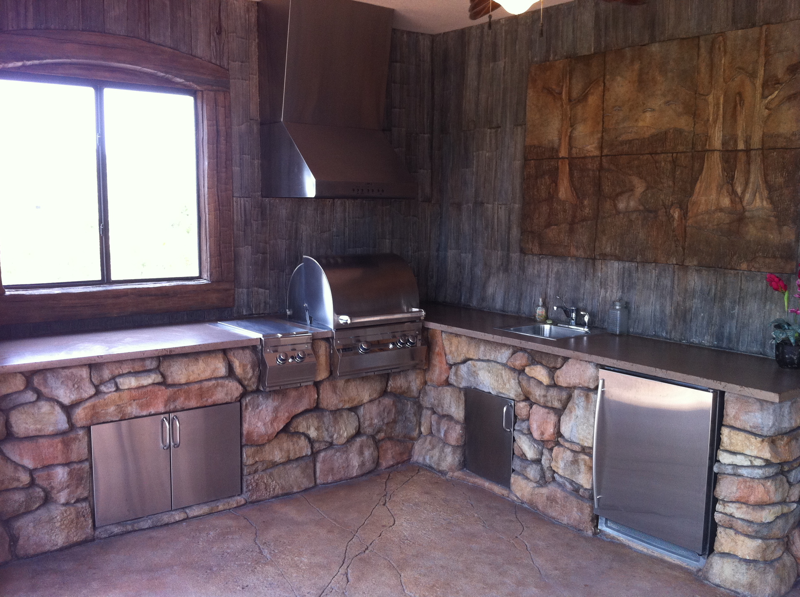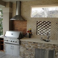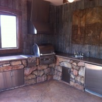 - The walls of the kitchen are built of stone or brick, you can still make the frame of metal or wooden beam. Further, they need to be sheathed externally and internally by lining or special boards. If wood finishing is used, then it needs to be treated with special solutions to protect against moisture, this is best done annually.
