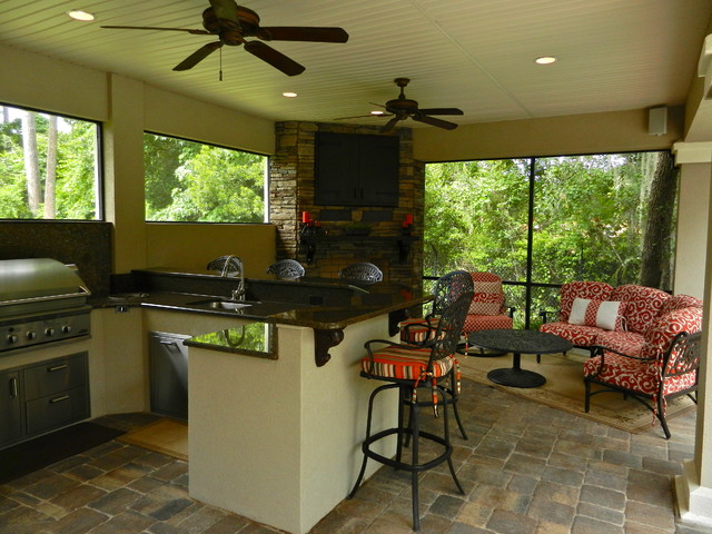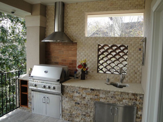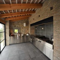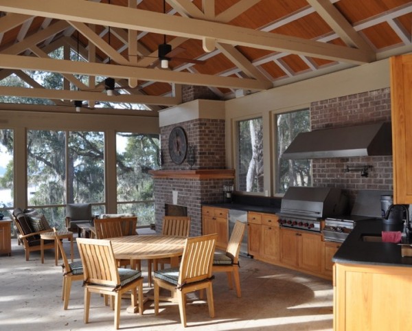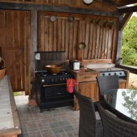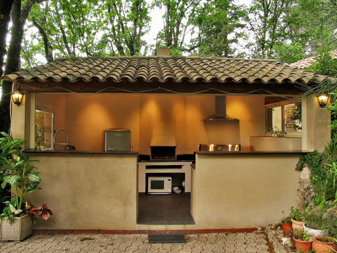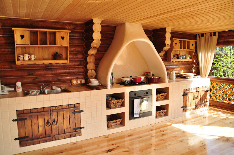 If the summer kitchen has a full-fledged traditional wood-burning stove, you should definitely consider the aspects of smoke removal. Often today, both a stove and an oven are installed right away, thanks to which you can please relatives and guests with ordinary dishes and at the same time cook aromatic barbecue. It is advisable here to carry out all the required communications at once, which will make life easier for the owners.