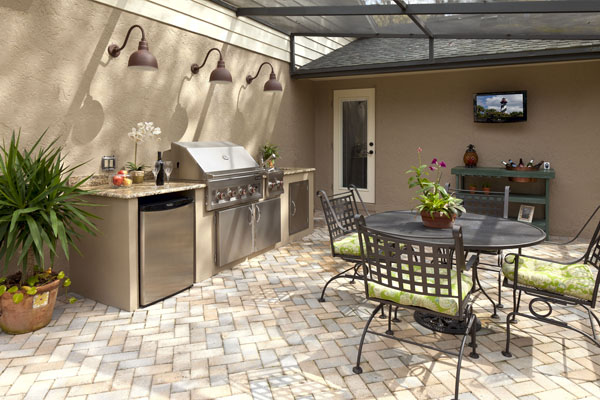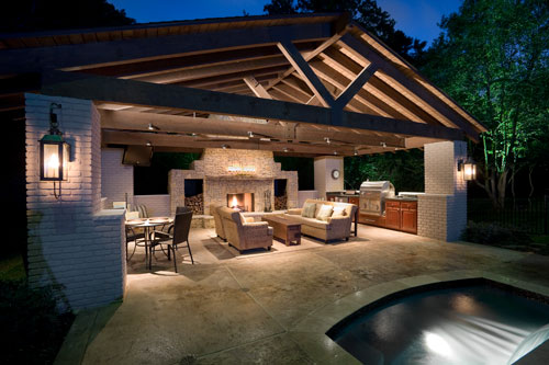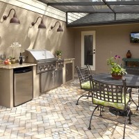 The next important aspect of the arrangement of the summer kitchen is the choice of lighting; separate convenient lighting is required for the working area and resting place. Lamps need to be selected, given their work in normal street conditions, you can choose an economical option by installing lamps with solar panels.