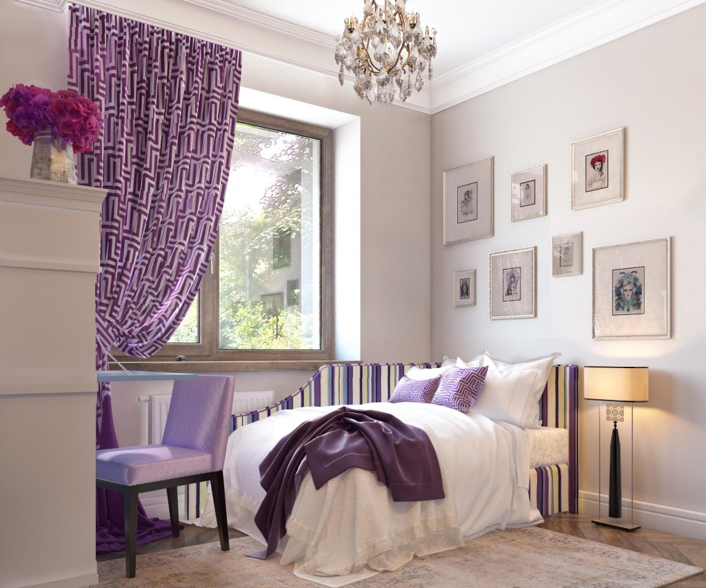 Violet tones are soothing. Association with the color of sunset will prepare the body for sleep. The interior in this color is at the same time calm, soft and stylish.Especially beautifully purple combined with white, beige and cream colors.