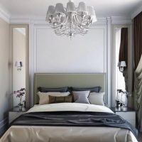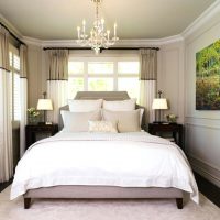 For furniture, carved models with enamelled ivory finish are suitable. Upholstery made of soft leather is suitable for the head of the bed, and curtains made of brocade, velvet, satin are suitable for window decoration. If you complement the classic design with well-planned lighting, then a small bedroom can turn into a truly royal.