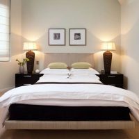 The modern style combines neat and reliable furniture without an abundance of decorative elements, monophonic wall and ceiling coverings in a gray, white or beige palette. It is worth avoiding dark shades, they are more suitable for large bedrooms. The visual expansion of the space will help the elements that reflect light: metal objects, chrome handles, polished wood, mirrors, etc. You can dilute the restraint of design with accents in the form of paintings, floor lamps, indoor plants.