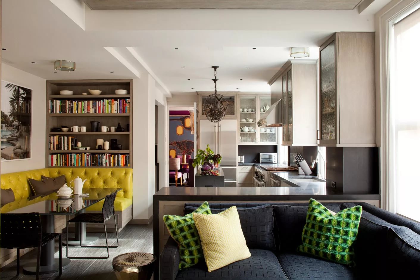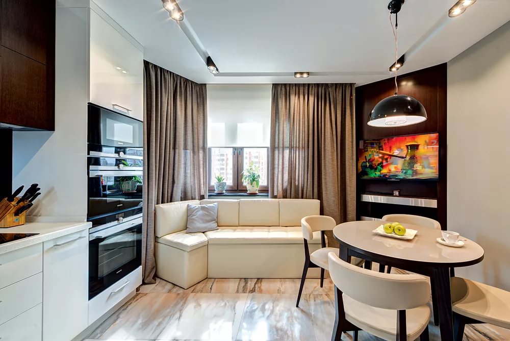 - 14 50 photo ideas for placing a sofa in a kitchen interior