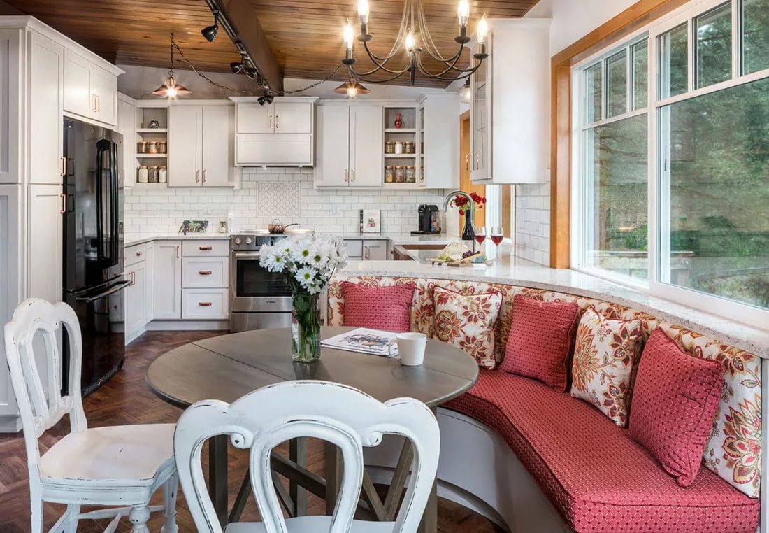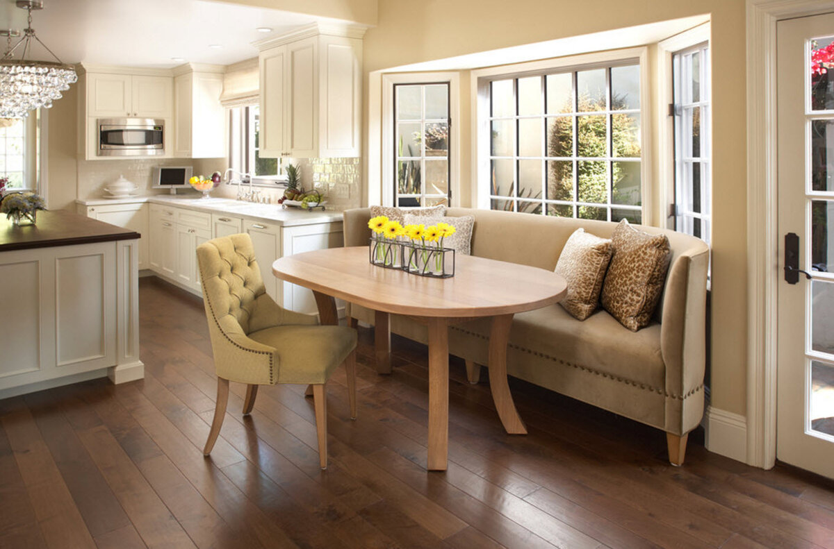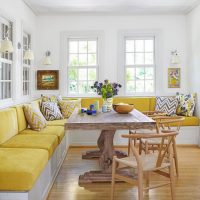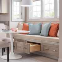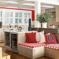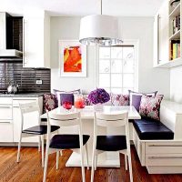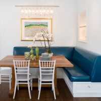 The kitchen has long ceased to be just a cooking place. The appearance of the sofa is not considered something unusual. After all, it greatly expands the functionality of the room.