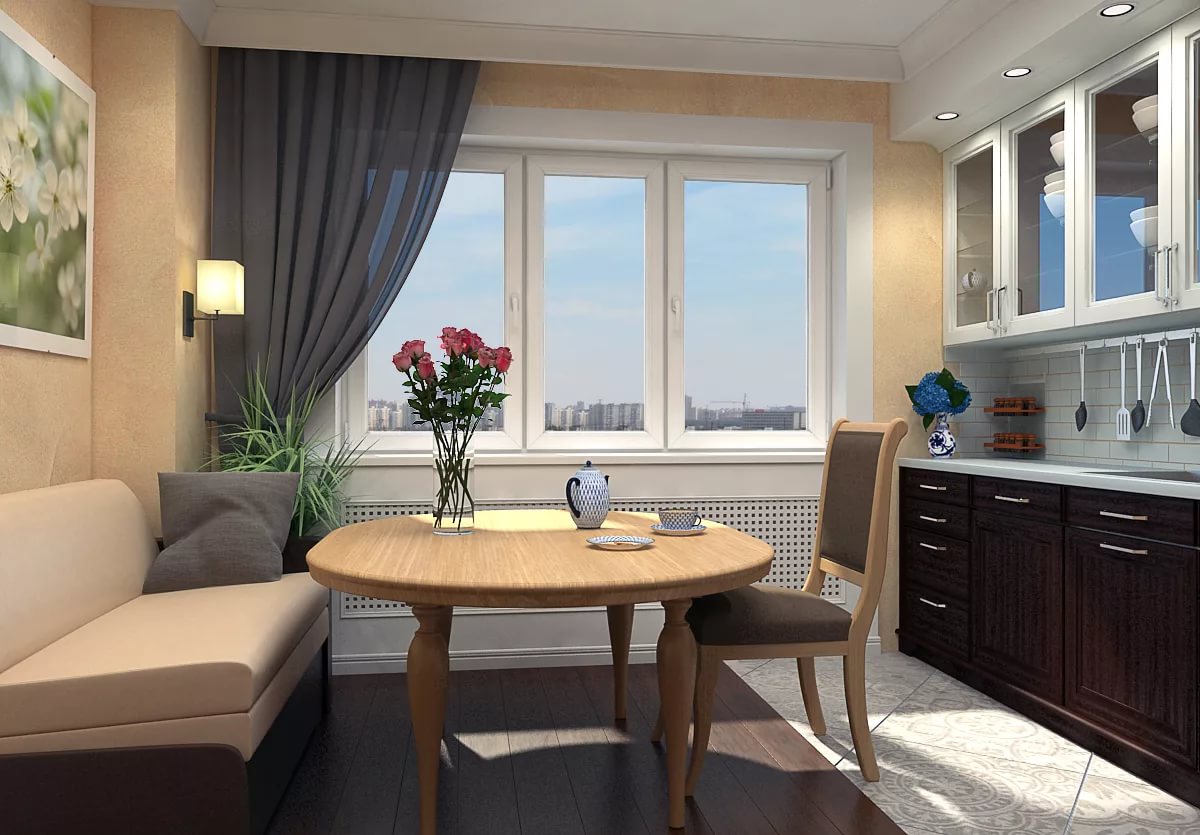 Increasingly, manufacturers offer a combined model. It is usually part of a modern kitchen set. The design is a pull-out unit with a seat by the window or wall. A single monolith allows you to create a single design without breaking the space into separate parts.