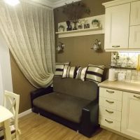 Such furniture is very popular. The range of mini sofas is very wide. There is an opportunity to choose a product according to color and design. This is the perfect model for tiny kitchens. It is quite low and compact. Often they are used for zoning space. Mini-sofas in the Provence style look spectacular. Among the disadvantages are the lack of a layout mechanism.