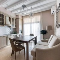 In the classical style, the main role is played by the compositional solution. In the room, an object should be selected, around which the interior is built. If the area allows for this role, a large sofa made of wooden frame and leather upholstery can qualify. Also worth a look at the corner and combined models. The color scheme should reflect the overall color scheme of the room.