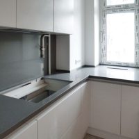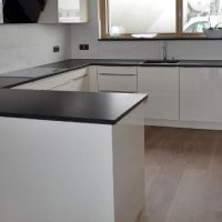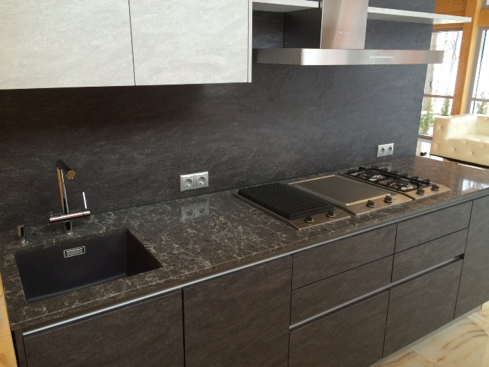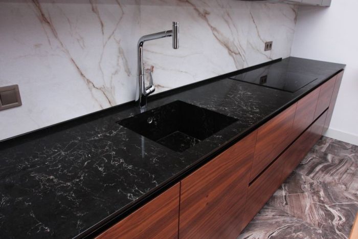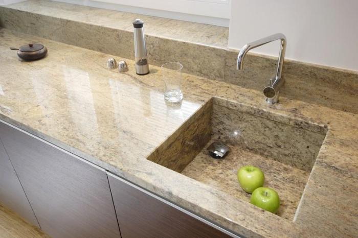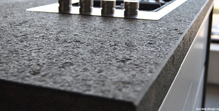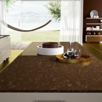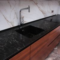 A countertop made of such a material will withstand the impact of heavy objects, as well as mechanical impact. The monolith contains at least ninety percent of quartzite chips, which makes the product incredibly durable. It is this property that is most appreciated in the kitchen.