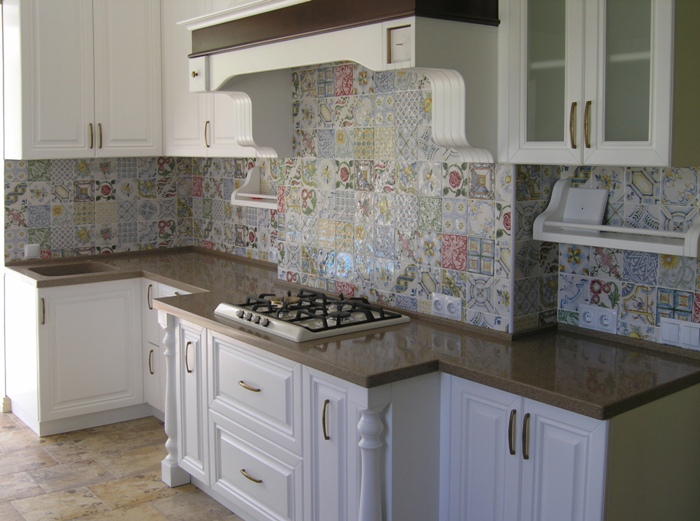 Quartz countertops go well with ceramic tiles.