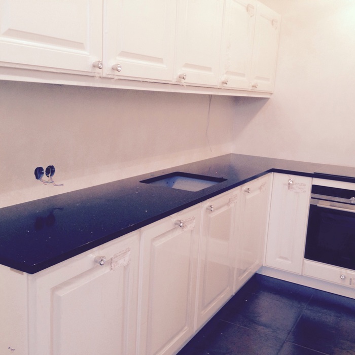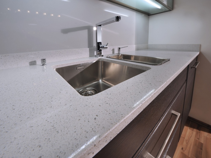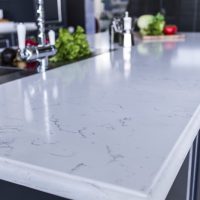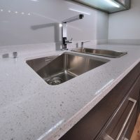 Quartz countertop in the kitchen interior.