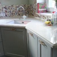 Then a pigment is added that will color the product in the color chosen by the customer. The plate is pressed, hardened at high temperature. Workers grind, adding a distinctive shine to the countertop. Usually it turns out to create a countertop in which the seams are not noticeable. So, this is a wonderful option if you need to make a product for installation in a corner of the room, or an item of non-standard shape.
