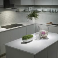 Steam often appears in the kitchen, so it is important that the product is moisture resistant. Quartz will not be able to absorb steam, which means swelling and destruction does not threaten. This ensures a long service life.