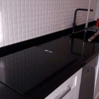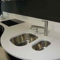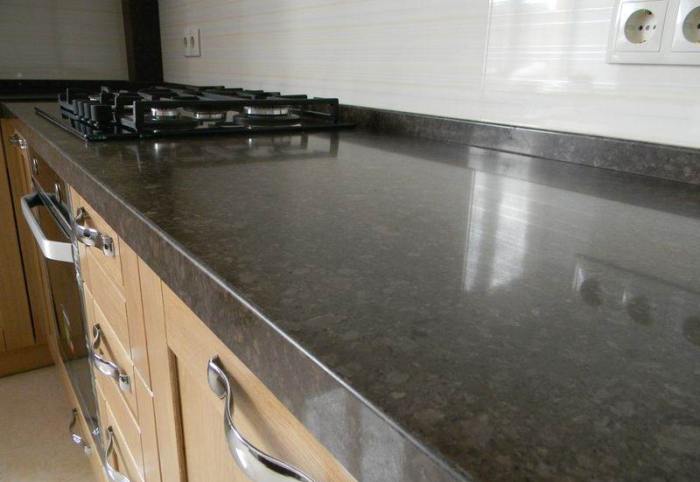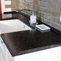 - There are no pores into which moisture gets. Because of this feature, you can not be afraid to wash the countertop with plenty of water. The product does not swell and does not collapse.