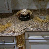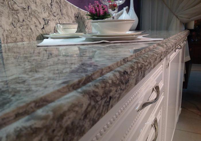 Thanks to the unique texture, the stone countertop is combined with any set.