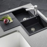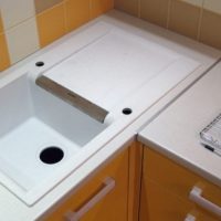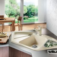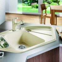 For a harmonious combination, the color of the sink should match the color of the kitchen worktop.