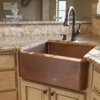 Mortise options "flush" into the surface of the countertop. They are often difficult to mount, as the hole for the sink will have to be cut to size. The sides of the product are flush with the table plane, the product is made of "stainless steel", ceramics, and in more luxurious interiors - from natural stone, composite materials.