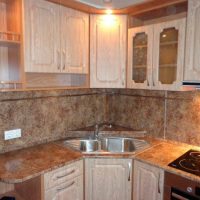 The kitchen is a place that includes a huge number of functional elements that need to be carefully linked to each other. A worktop, hob, refrigerator, numerous open shelves, corner kitchen cabinet for washing should make up a single “ensemble”, in harmony with each other.