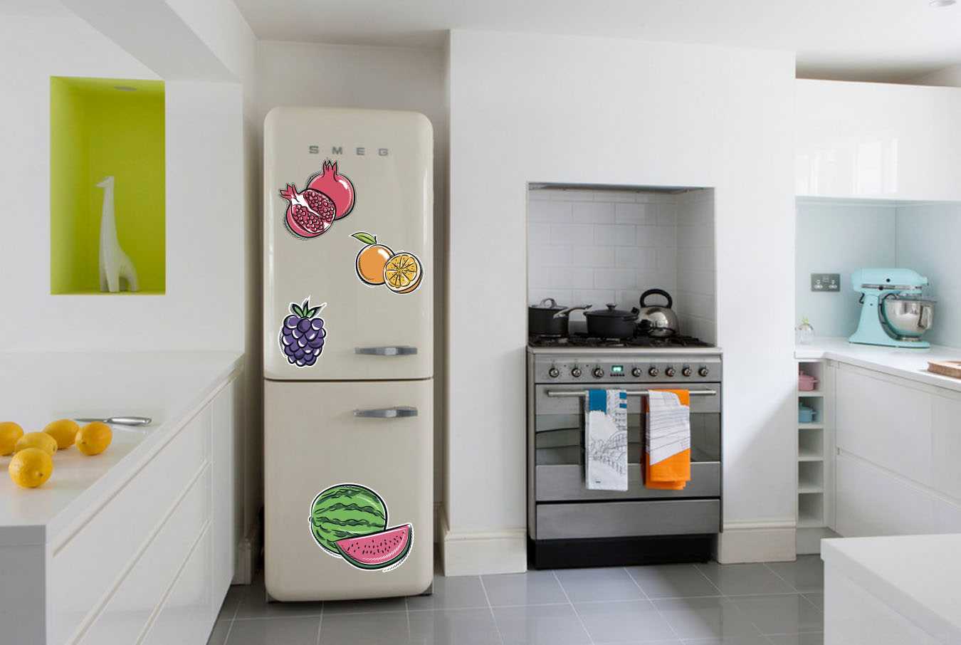 You can stick such funny stickers on the refrigerator.