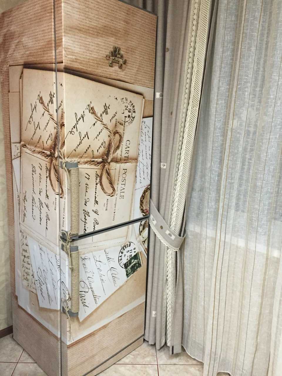 The refrigerator can be glued over completely, it will look very beautiful