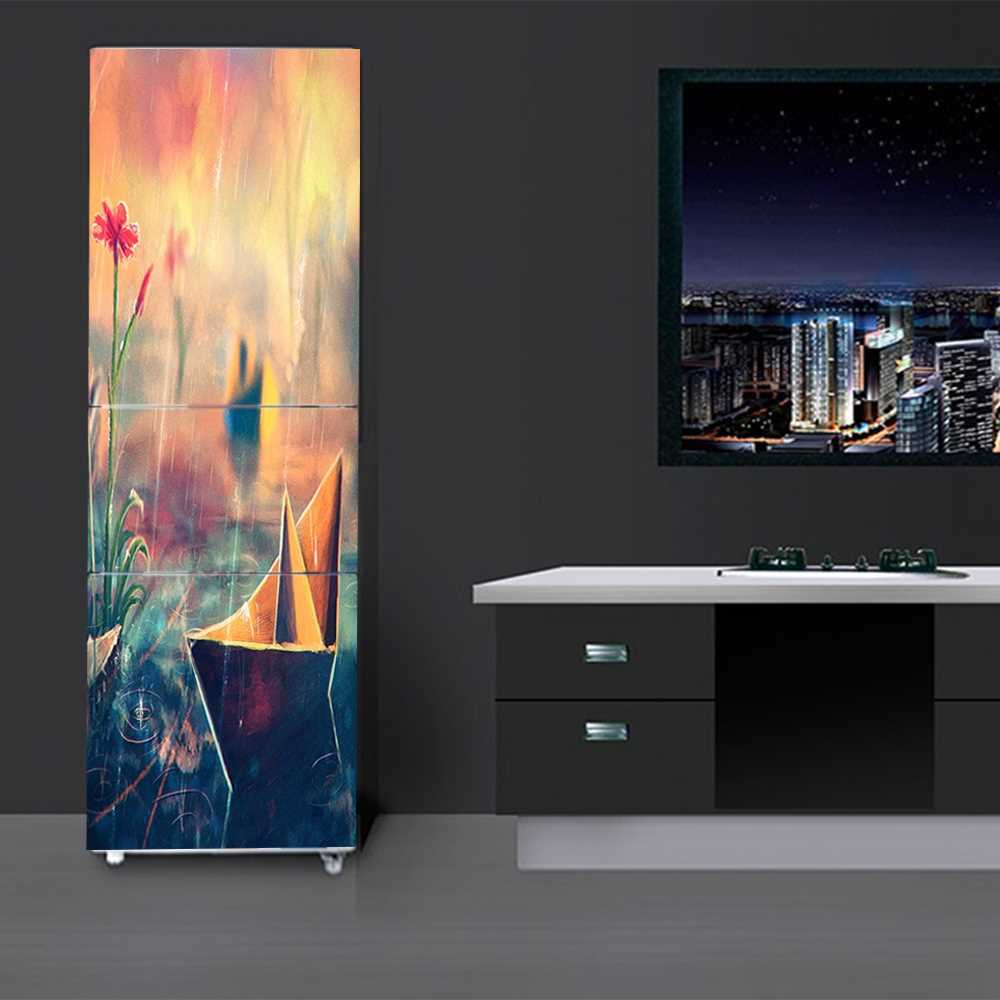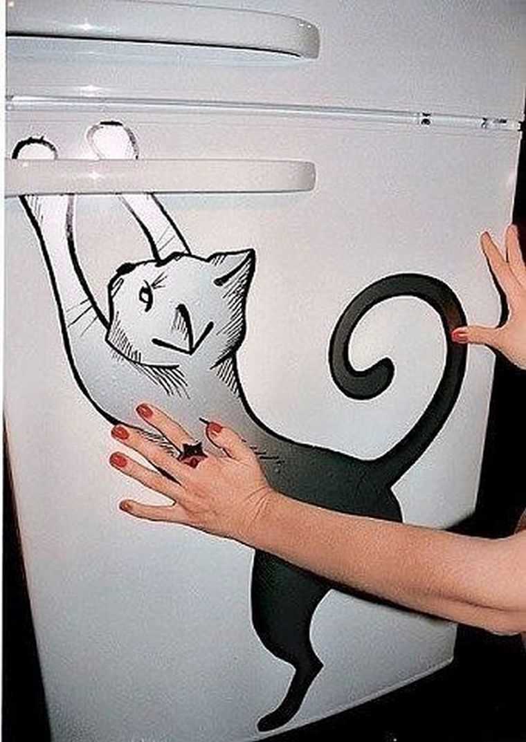 This design can replace art painting so that it will be difficult to distinguish technology. There are a number of 3D stickers that can turn the refrigerator into a separate world. So you can easily “lodge” a pet in the kitchen, “build” a fireplace, “create” a sea beach and simply have a cozy or cheerful atmosphere.
