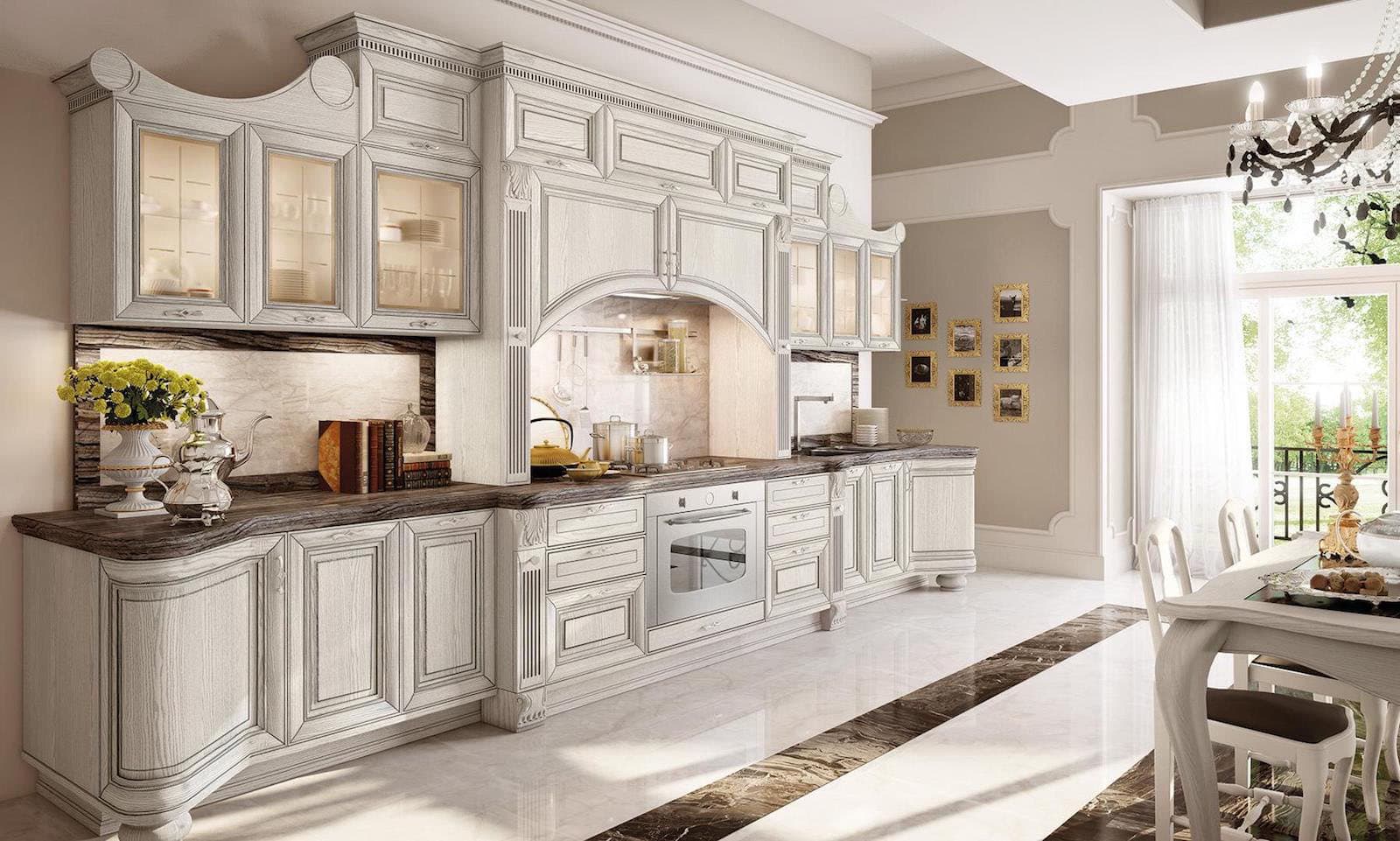 Expensive, classic kitchen Design It is used to design spacious rooms, in small ones it looks trimmed, cramped. If you want to fit the classics into a small footage, then the presence of such elements as cornices, carvings is undesirable.