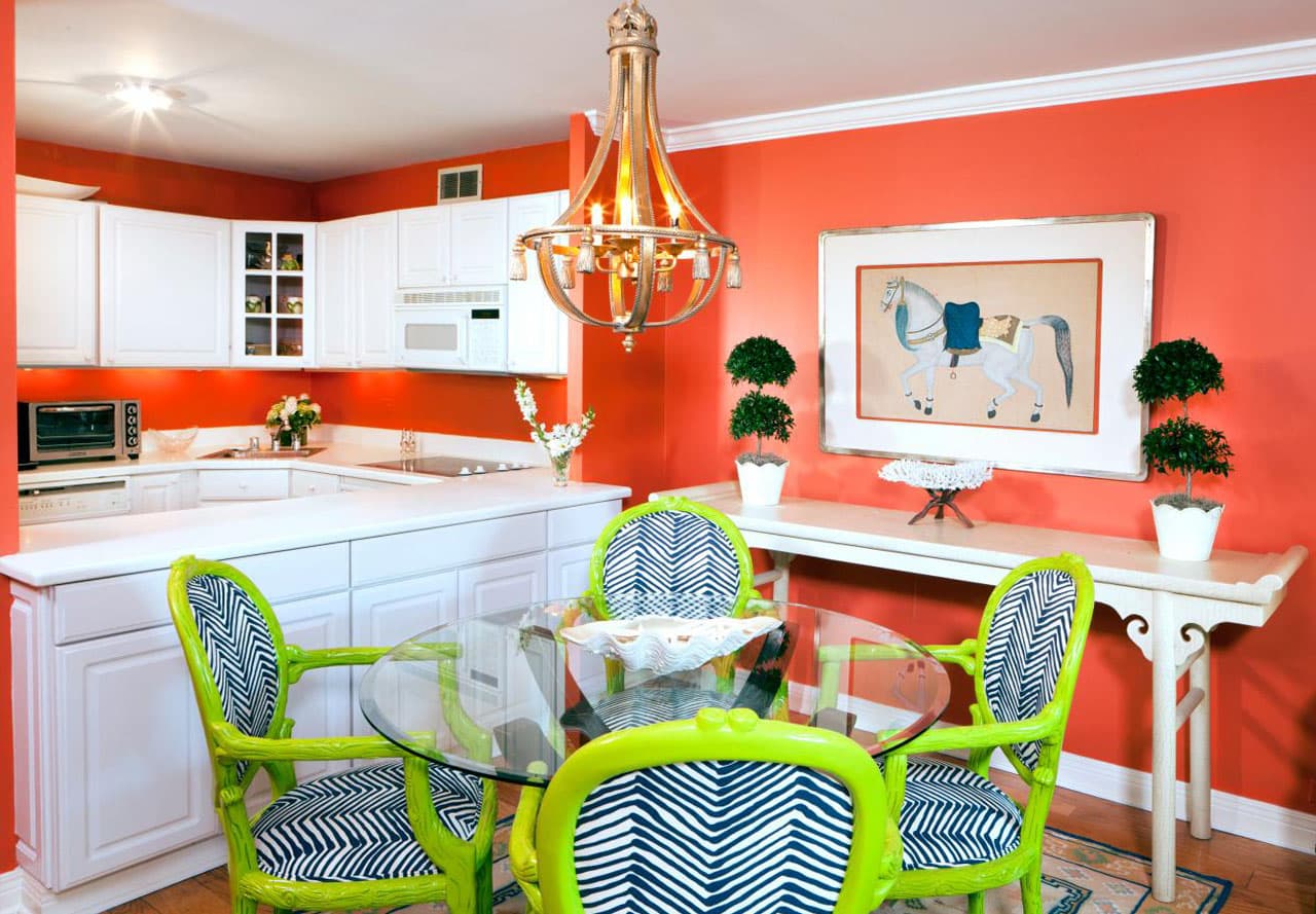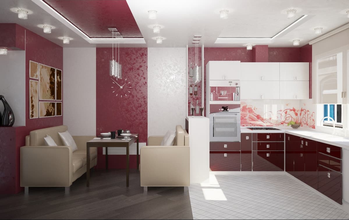 For the kitchen, sunny colors are preferable: lingonberry, strawberry, heavenly. They will give a good mood in the morning, set in a positive mood.