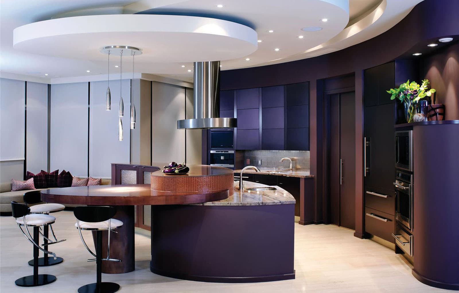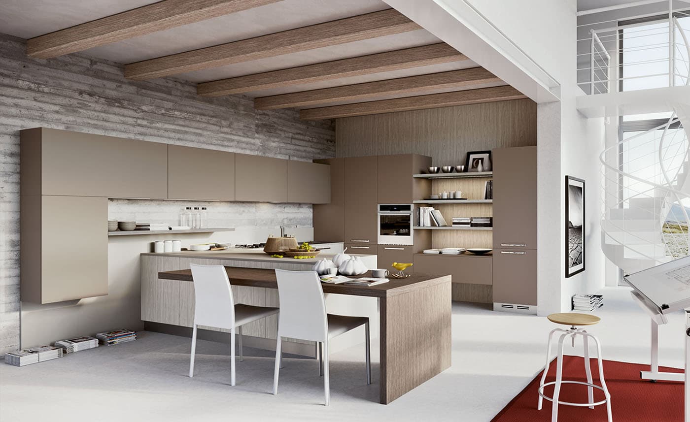 | Island | Only suitable for spacious rooms. If the footage allows, then you can connect the place for cooking with the dining area. Either a work area or a dining table is brought to the center of the kitchen. The island itself can be any size. |