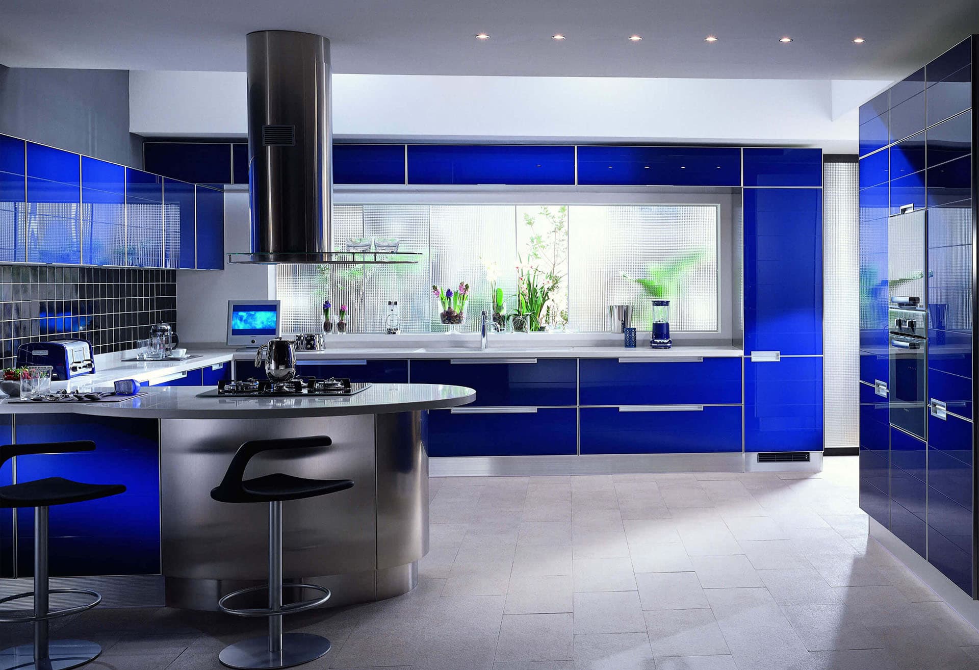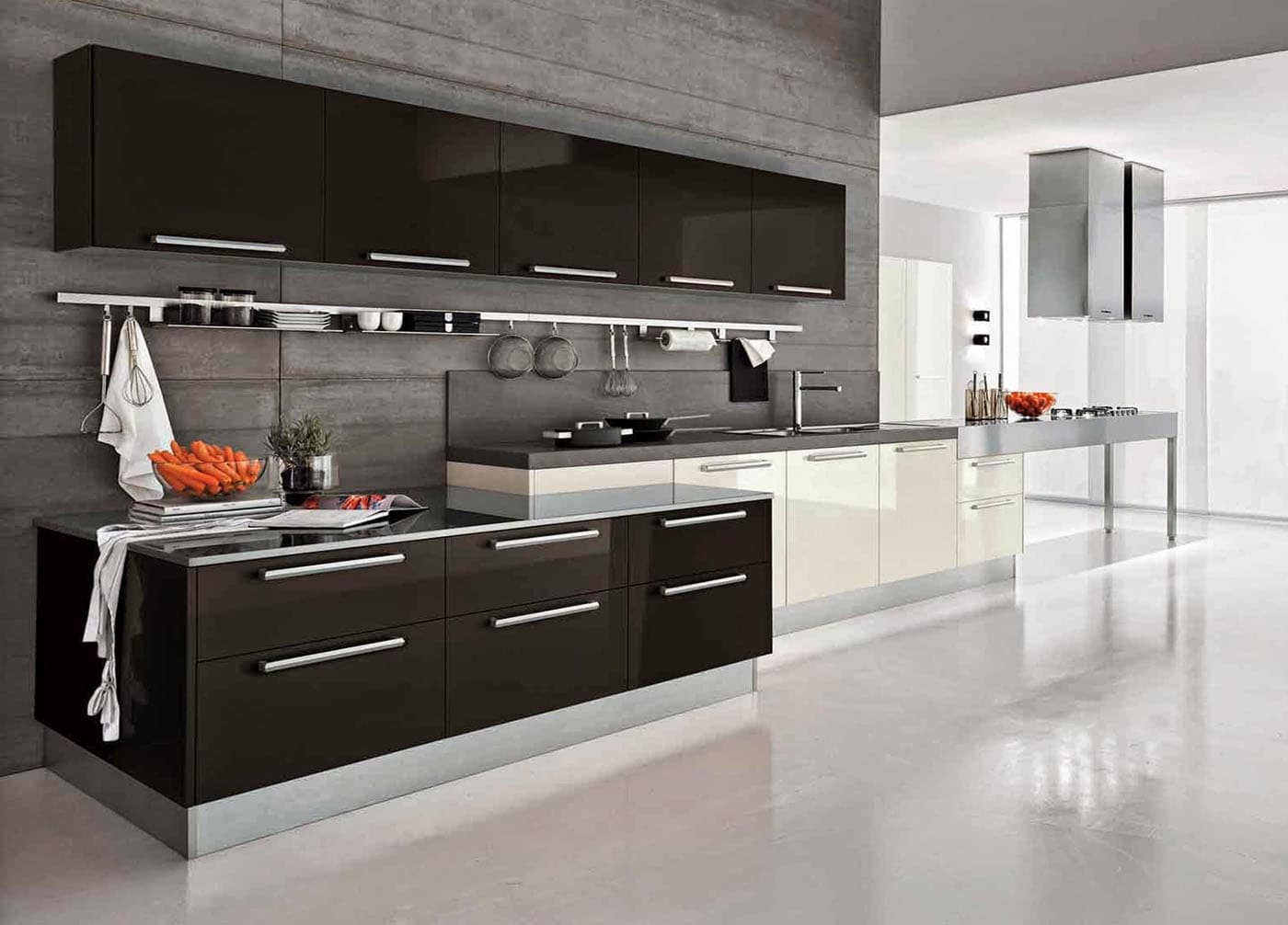 Glass and metal lovers will love the hi-tech style in the interior of the kitchen - unobtrusive, straightforward, with perfect proportions.