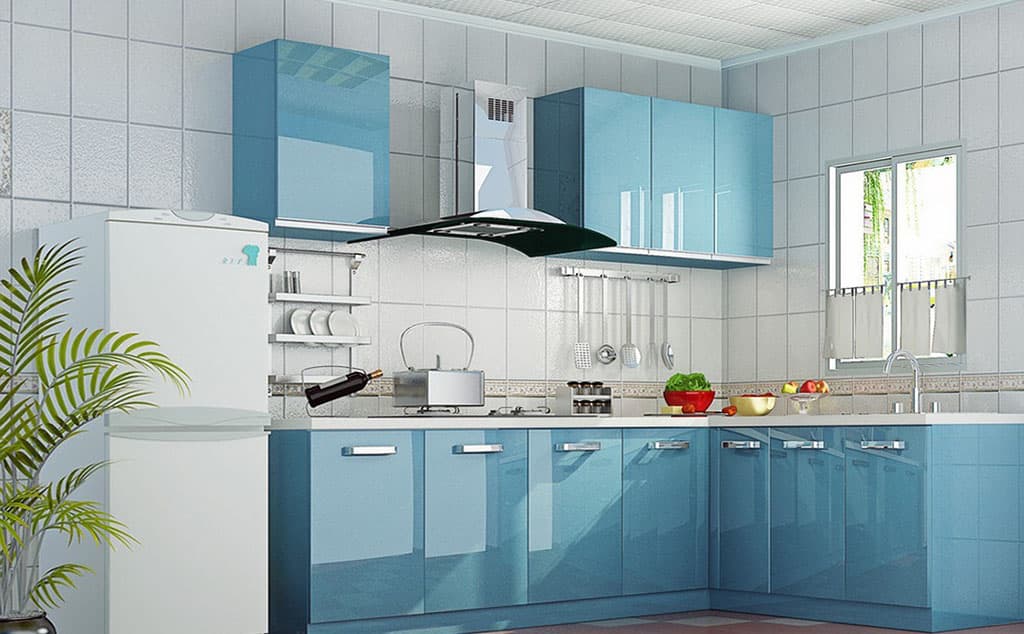 Recently become fashionable kitchen Designcombining shades such as blue and purple, yellow and green, pink and beige.