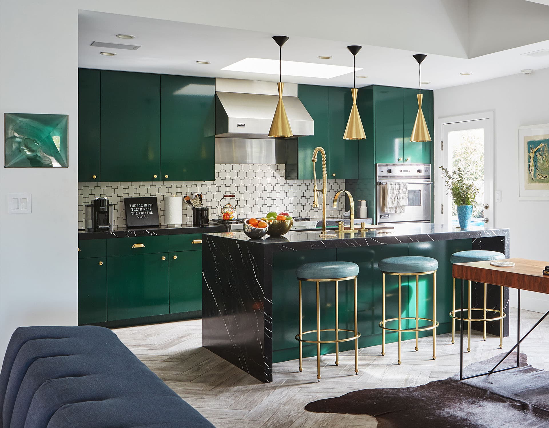 Bright colors and bold combinations are very organic in modern interiors, including on the kitchen.