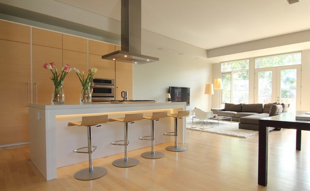 Undeniable plus hi-tech is that its possible use combined with other styles. You can combine high-tech with minimalism and a loft, it will look as spectacular and modern as possible. Some components of Art Nouveau and pop art will soften the technological style and give it a gloss and charm. For execution In recent years, urban apartments have been using high-tech, harmoniously interwoven with various components of eco-style.