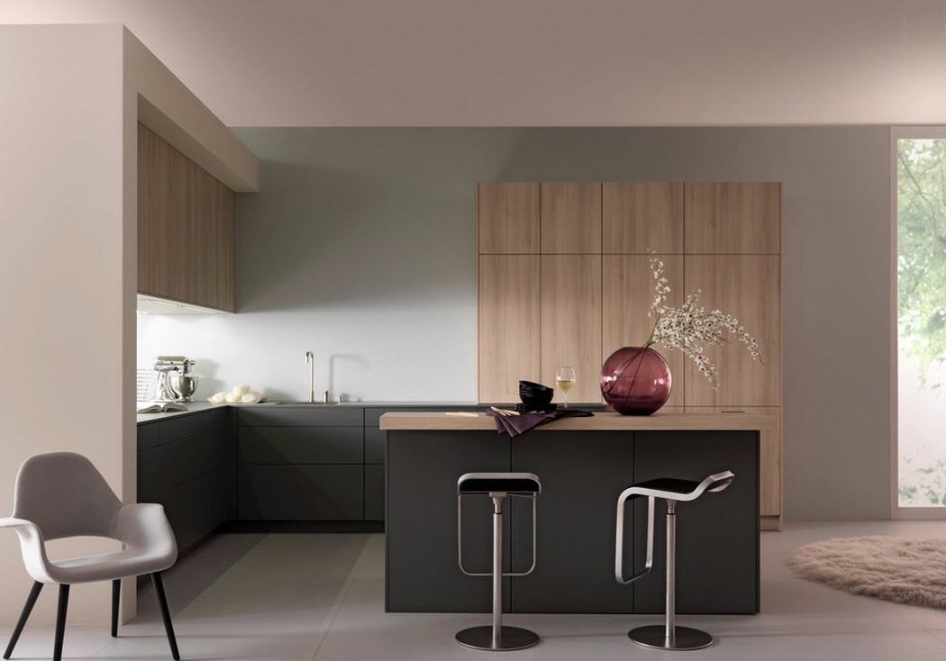 Do not be afraid to experiment, the skillful combination of natural materials and a combination of natural shades will give you the kitchen of your dreams, which will be a special pride.
