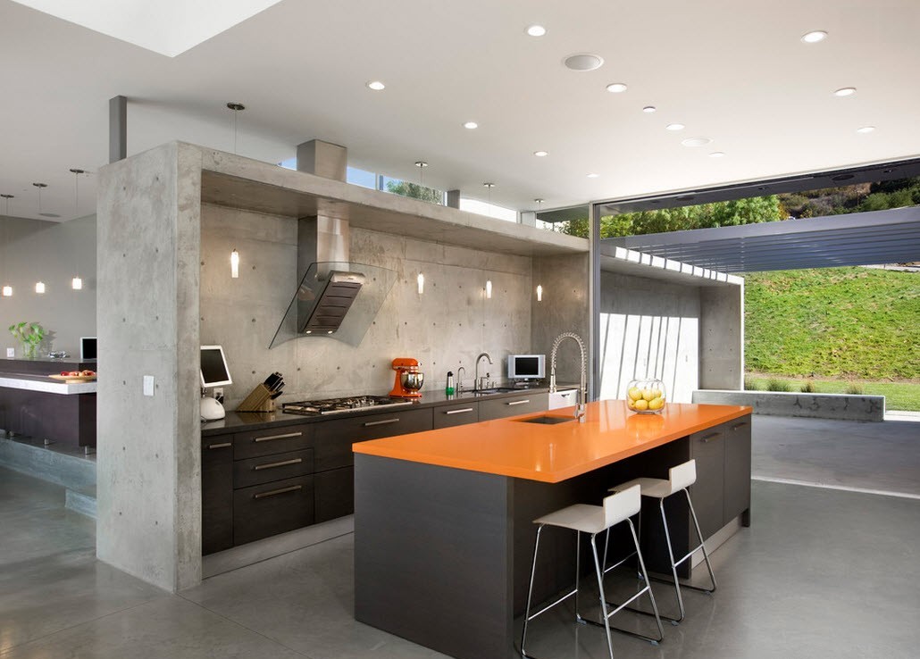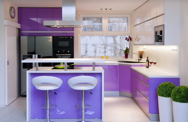 Everything in this world has positive and negative sides. Kitchensdecorated high tech, not an exception to this rule.The indisputable advantage of kitchens is that they are made from environmentally friendly and high-tech materials, which are famous for their durability, resistance to wear and meet all sanitary requirements and standards.
