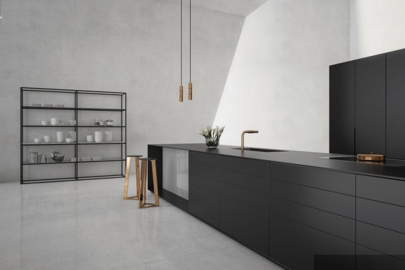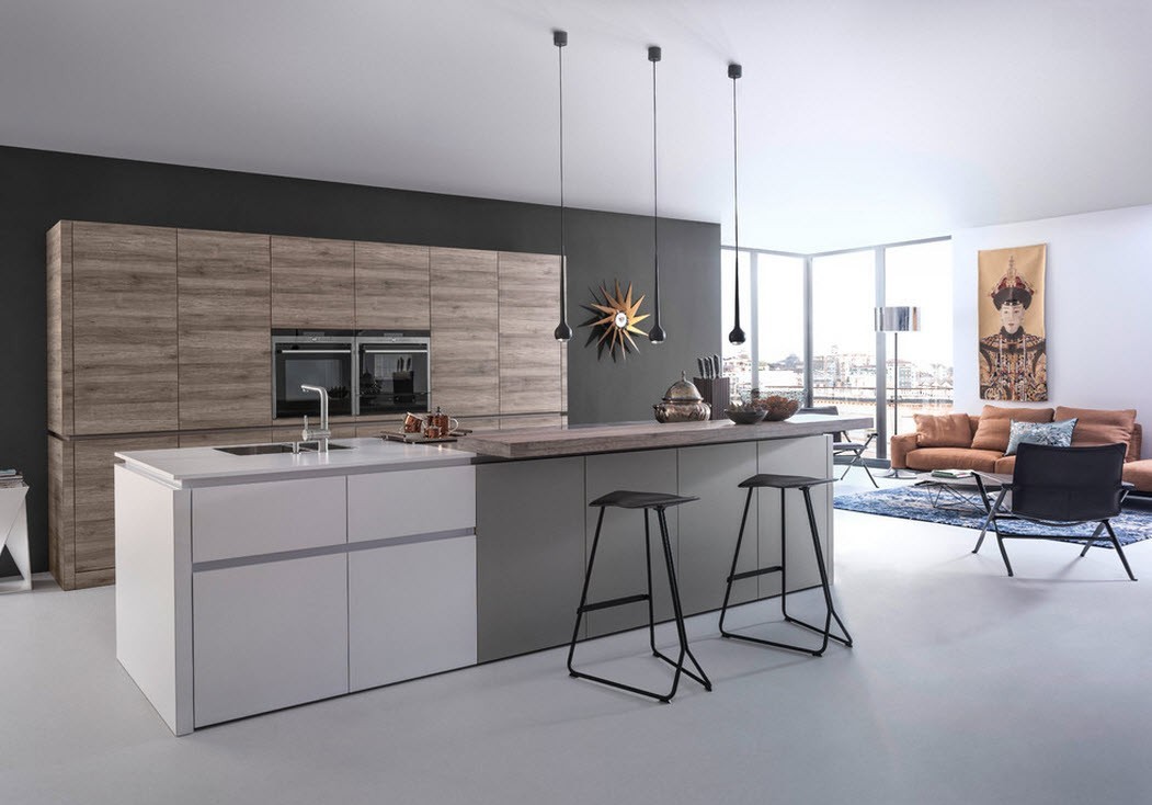 The almost complete lack of furniture fittings is the hallmark of the style. AT facades special fittings are built in, opening furniture with a little click on it. If this option seems quite inconvenient for you, use the profile handles or discuss with the headset manufacturer the possibility of embedding hidden handles.