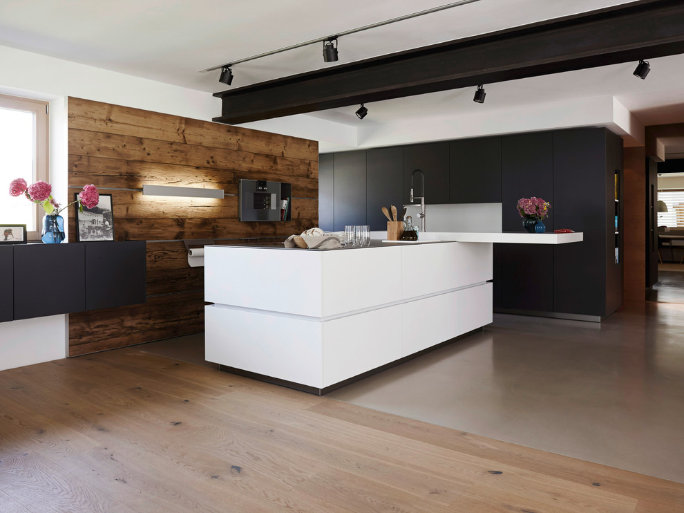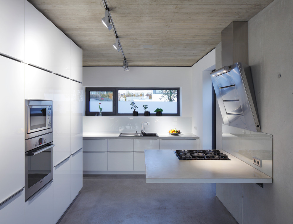 The main finishing materials for creating a high-tech interior in the kitchen will be paints, thanks to which you can create an imitation of concrete, metal.