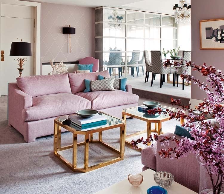 A carved sofa with lavender cladding will give the room sophistication and luxury