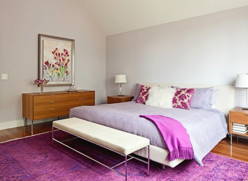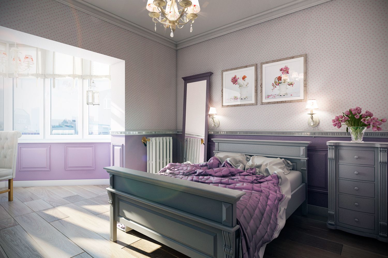 In the classic bedroom, lavender shades are ideal for textiles and decorative elements, especially in combination with light brown tones.