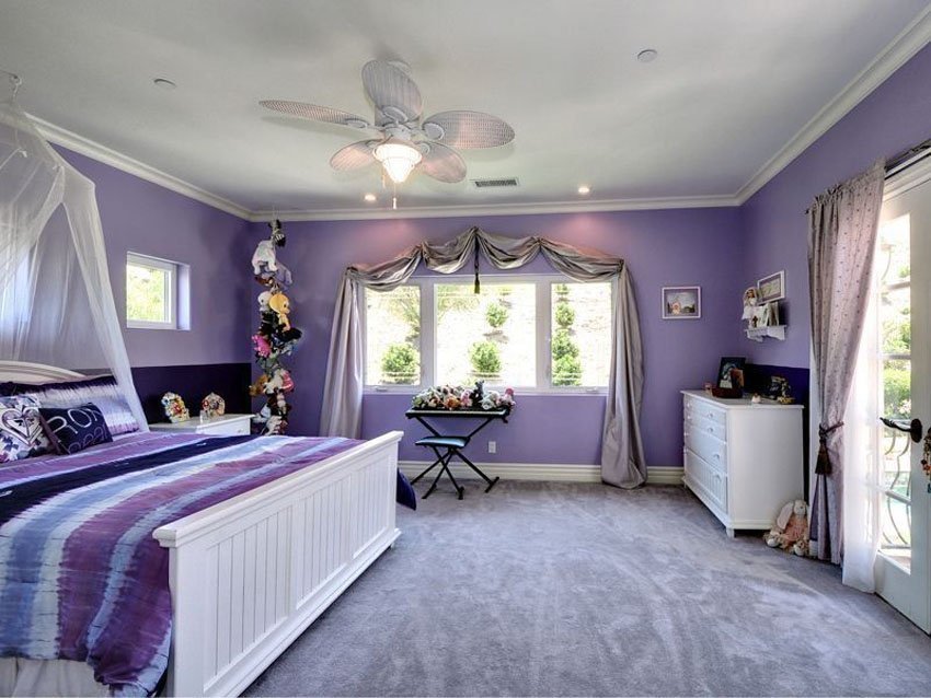 Delicate and romantic shades of lilac are quite capable of replacing a pretty annoying pink, just in the girls' rooms. Replacing the color and diluting it with beige and cream, you visually push the boundaries of the bedroom. So that it does not look boring and blurry, make color accents - bright monochrome posters, color graffiti on the walls, paintings in rich green, raspberry, ocher shades.