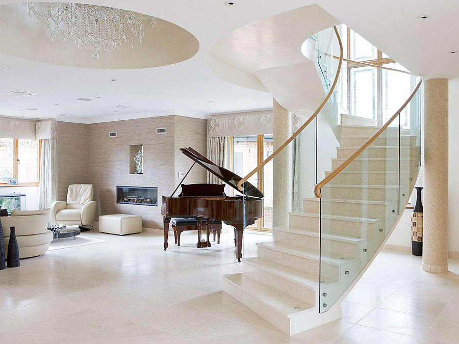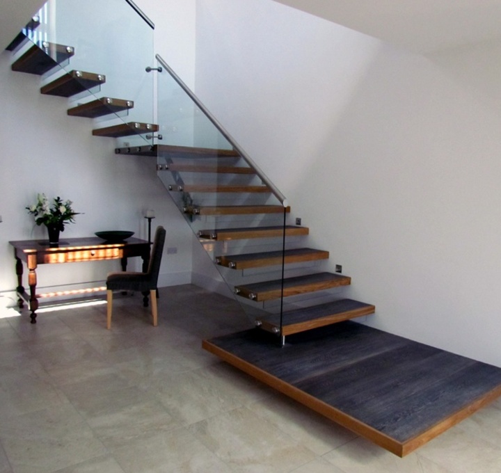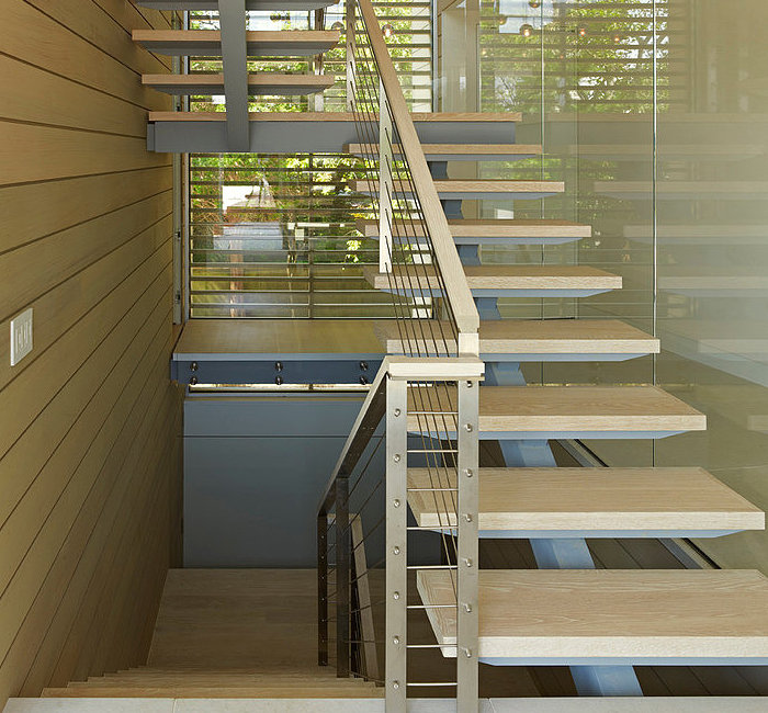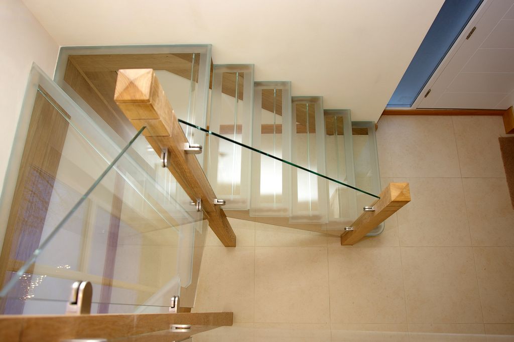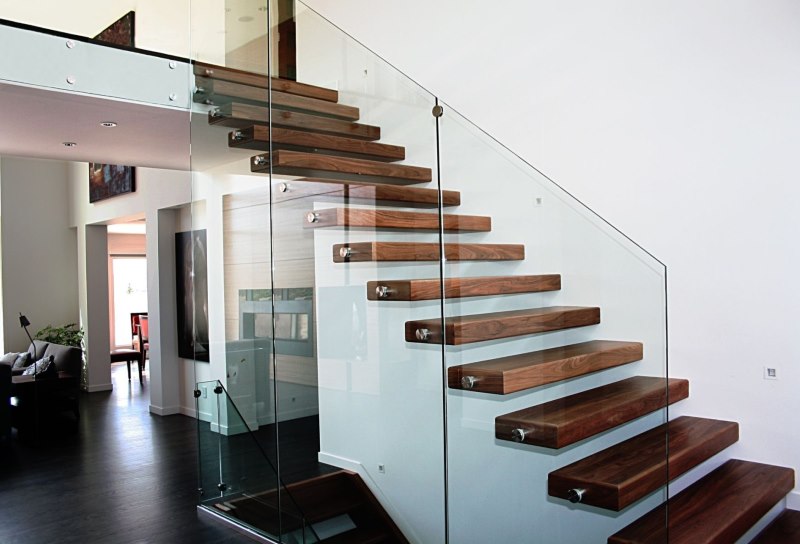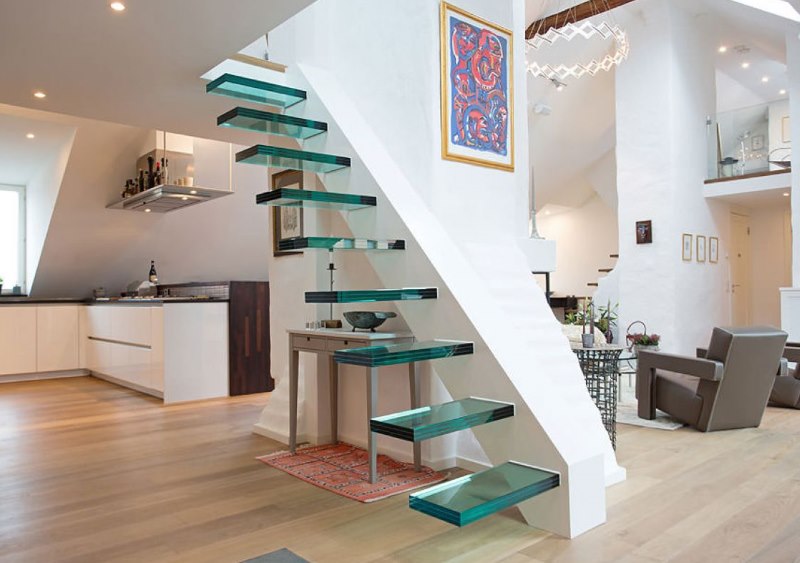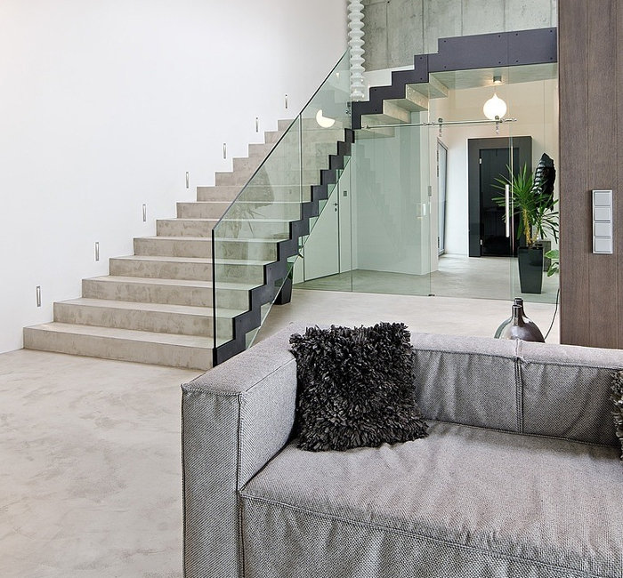 Stairs with glass railings look lighter and more airy.