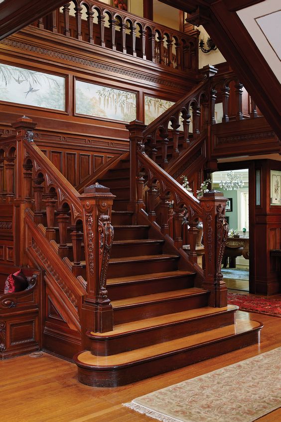 In the classic interior, the staircase works for respectability - strict railings, solid steps, solid wood