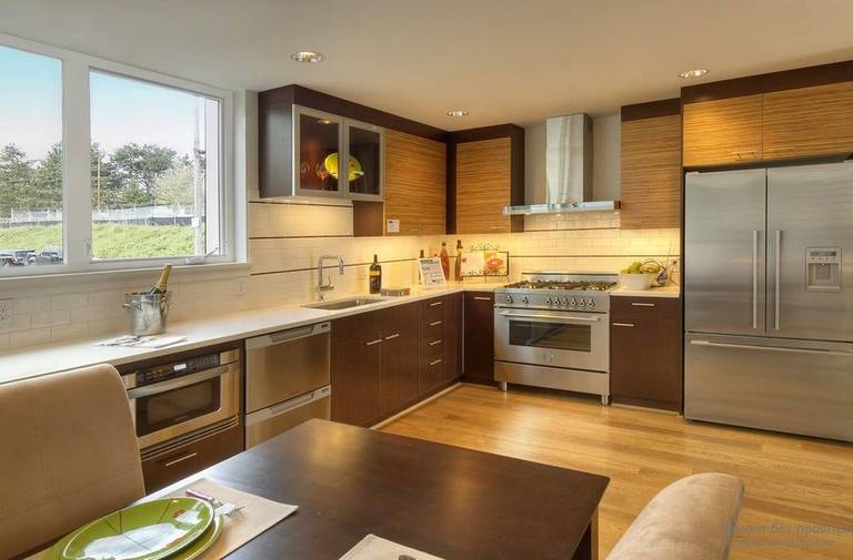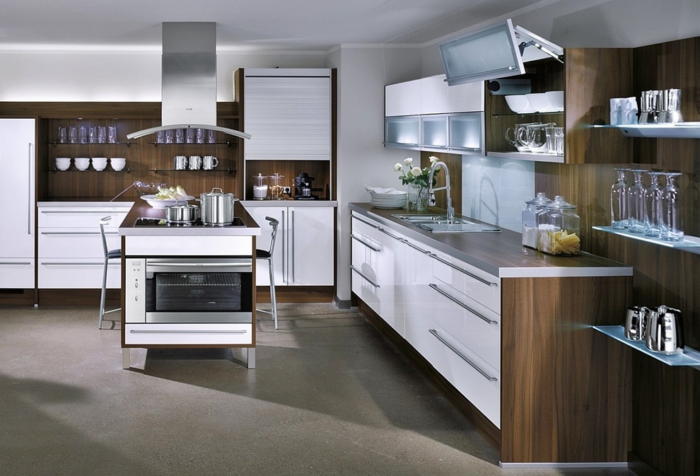 German cuisine should provide the needs of any housewife. In such a kitchen, cosiness harmoniously resonates with functionality. Each interior item is in its place. German cuisine prefers a new kitchen interior, so here you can see furniture made of fashionable materials and modern appliances. As for the kitchen, the best solution is a dark tiled floor and light walls. Do not forget that any decor items in the decoration, for example, decorative niches, will be superfluous. It is better to decorate the German-style kitchen with fresh flowers, beautiful dishes and cute curtains.