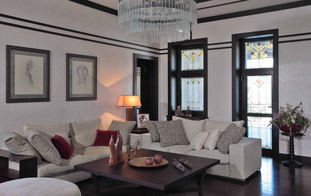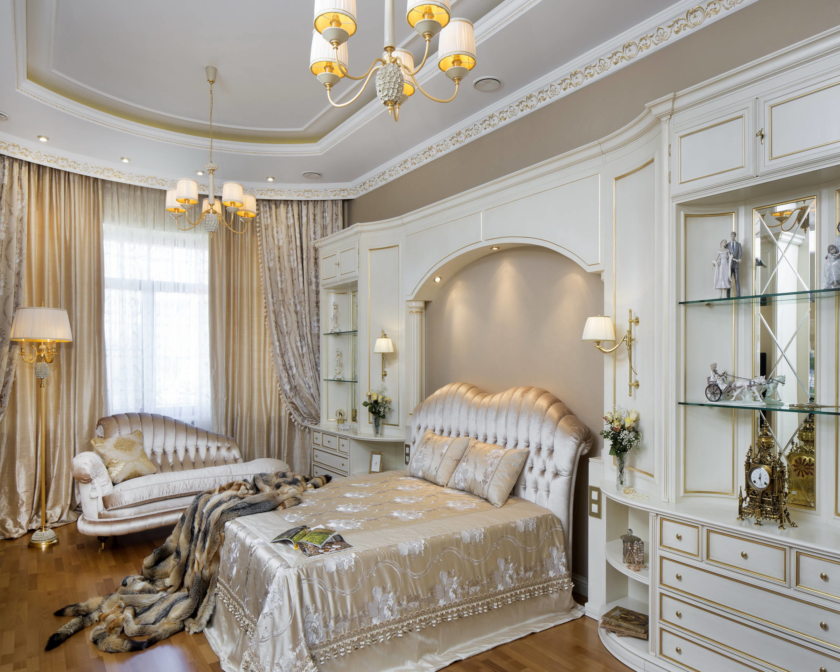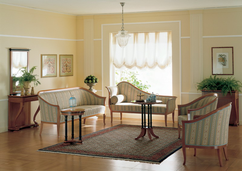 General, soft and warm, the tone of the furniture is in harmony with the dark (usually wooden) floor and creates a favorable contrast, which allows you to focus on elegant furniture. Usually used beige, brown, milky, sand and terracotta colors, less often green, olive, gray, light pink and light blue. Do not recommend silver, purple and black colors.