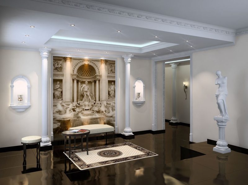 The ancient Greeks and Romans used sculpture to decorate their homes and cities. And they succeeded very much in this, having formed a whole system of voluminous details molded of stone, clay or wood. This includes columns, porticoes, cornices, pilasters, stucco on the walls and much more. Thanks to the use of all these things in the interior of ancient style it is interesting to be looking at the decor of the room.