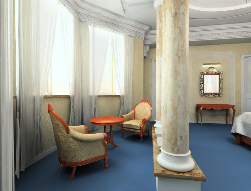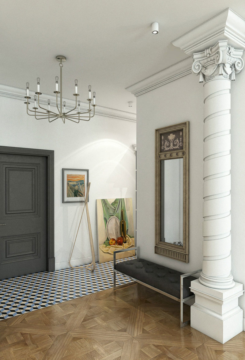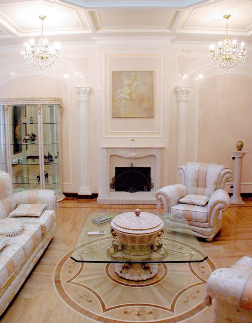 - Finish.In the antique style, thinking over the interior decoration implies not only the choice of materials that are supposed to be applied to the floor, walls and ceiling. Along with this, it is necessary to consider the location of decorative details. For example, walls in this style are almost always decorated with moldings, cornices, pilasters and so on.